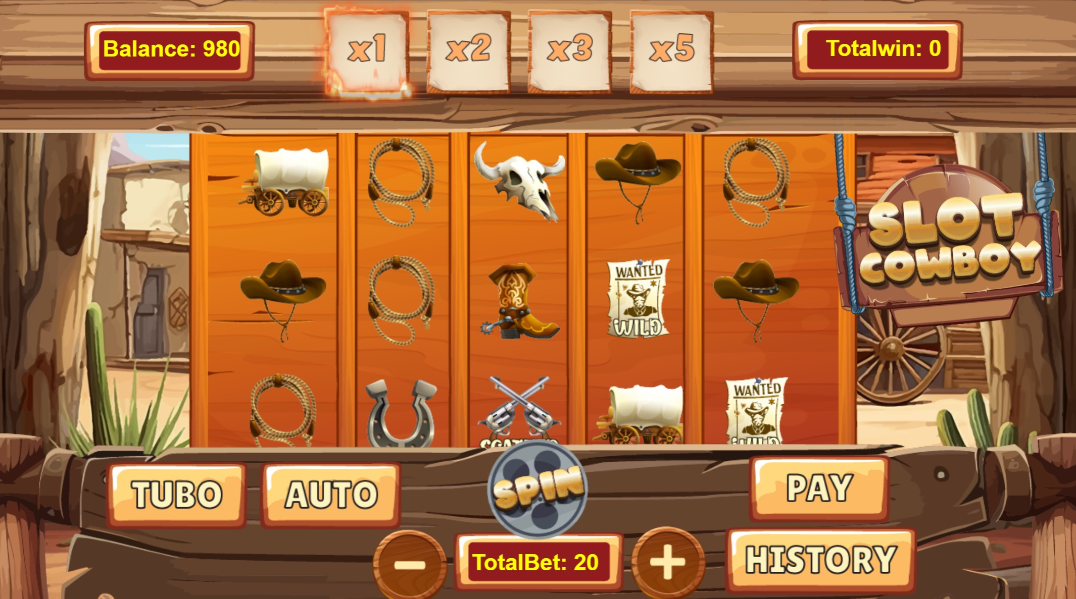 Feel the thrill of the frontier with each turn of the reels. Slot Cowboy brings the Wild West to life: flying hats, snapping lassos, and the whisper of desert wind. You’re not just watching—you’re in the action. Multipliers above the reels rise as you spin, from x1 to x5, adding excitement to your adventure. Each symbol tells a story: the wanted poster, spurred boots, and classic cowboy hats. Simple to start, hard to stop—that’s the cowboy spirit.